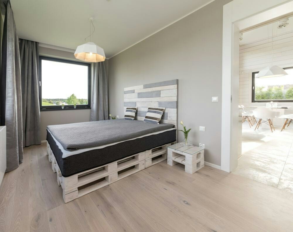 The proof is that the frame and table, mattress and floor in this room use wood as the basic material.